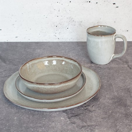 Kolekcja kamionki Breezy zachwyca wspaniałymi odcieniami i stylem boho, który sprawia, że każdy egzemplarz jest wyjątkowy. Przedmioty są wytrzymałe i nadają się do codziennego użytku. Nadają się również do piekarnika, mikrofalówki i zmywarki. Wyjątkowe kolory oraz elegancki i prosty design, to niektóre cechy tej spokojnej i harmonijnej zastawy stołowej, która po prostu nadaje się na każdą okazję. W Breezy znajdziesz talerze śniadaniowe i obiadowe, głębokie talerze, miski w różnych rozmiarach, miski do makaronu, naczynia kuchenne i wiele innych, ponieważ asortyment jest stale poszerzany o nowe kształty i kolory. Cª Atlântica jest synonimem pięknego wzornictwa zastawy stołowej od 2009 roku, produkowanej w Portugalii, w klimacie śródziemnomorskiego wybrzeża Atlantyku.